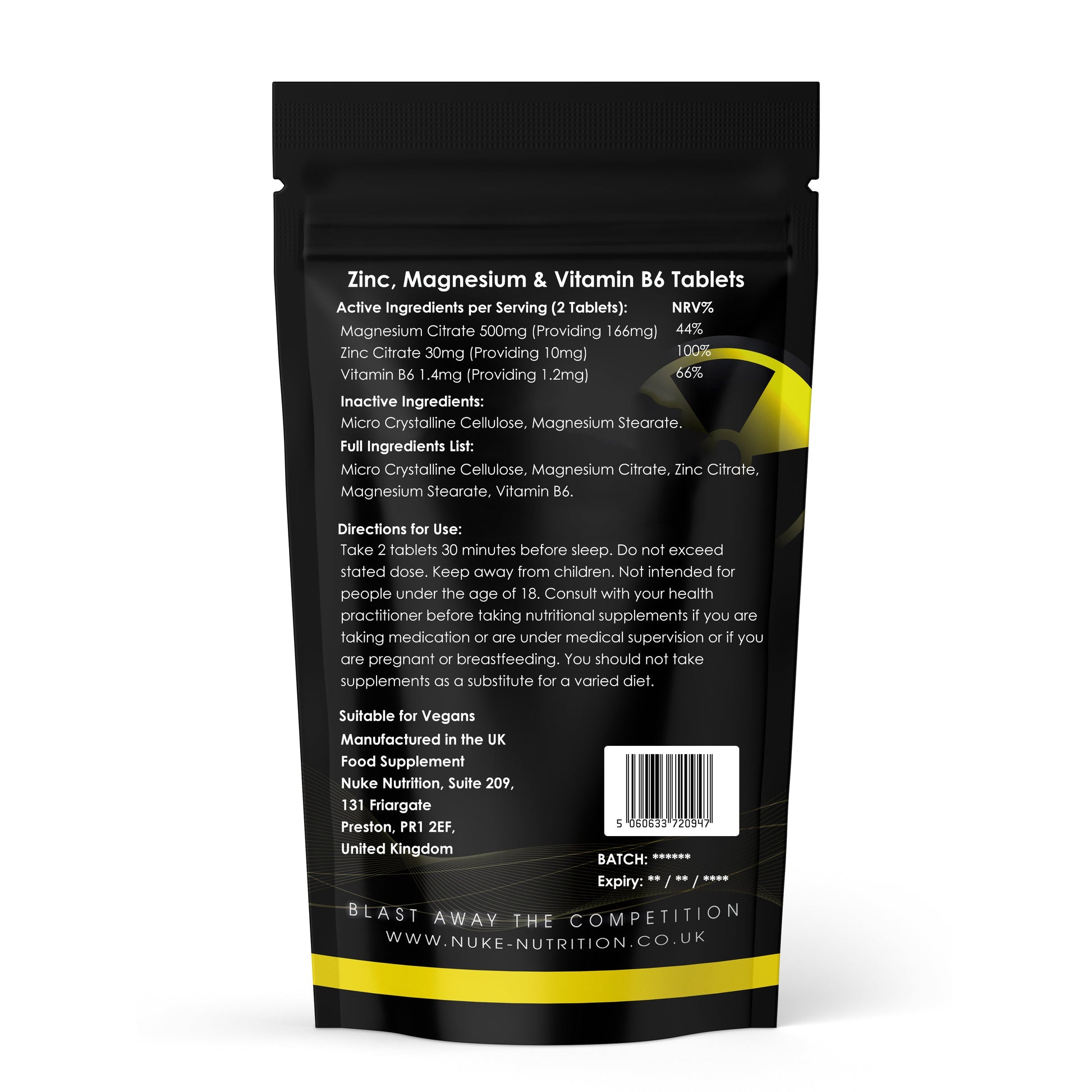 Our ZMA Tablets contain a potent blend of essential nutrients designed to support overall well-being, muscle recovery, and restful sleep. Each tablet contains a precise combination of Magnesium Citrate, Zinc Citrate, and Vitamin B6, meticulously formulated to promote a healthy lifestyle.